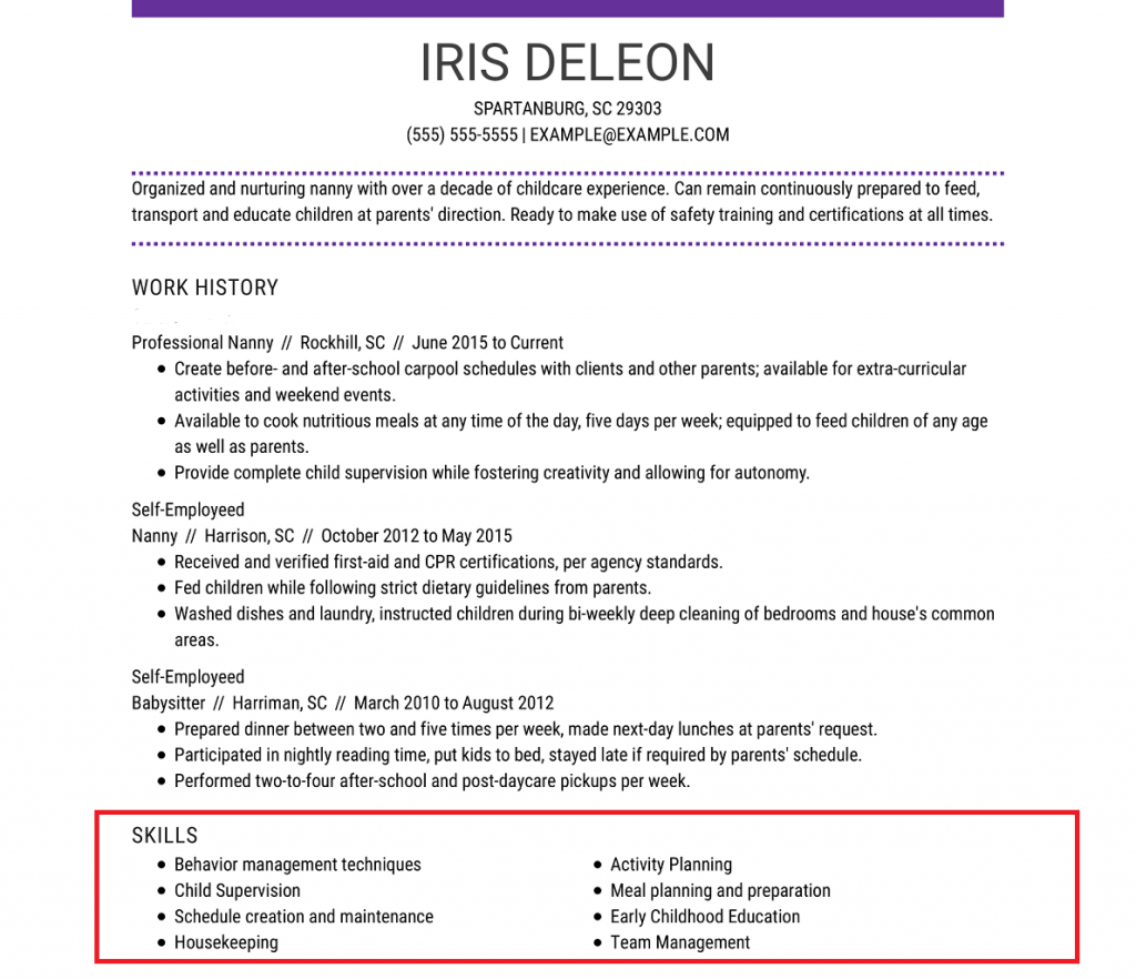 You can also share any special skills you have, such as being bilingual, having experience with special needs children, or the ability to provide housekeeping services.
